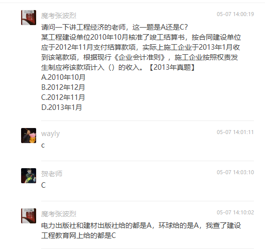 电力出版社和建材出版社、环球网校给的都是A,还有很多老师讲课给的是C,那么到底是C还是A呢?考生打架,我也搞不清楚了